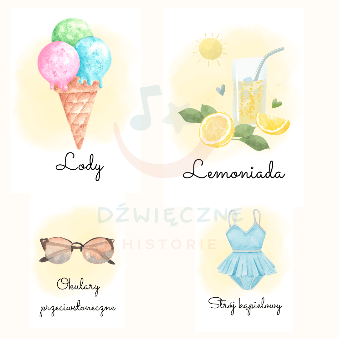 16 kart przedstawiających symbole lata.
